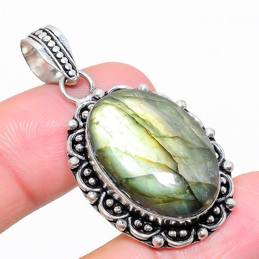 Labradorite Gemstone 925 Silver Jewelry Pendant 1.77"