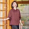 Damen Freizeit Hemdbluse Halbarm Lockerer Schnitt Einfarbige Sommerbluse für Mittleren Alters