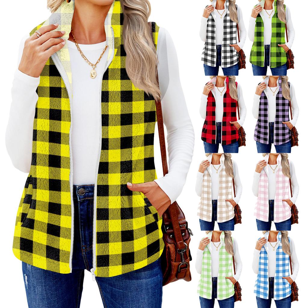 Damen Kariert Modisch Und Warm Fleece Strickweste Jacke
