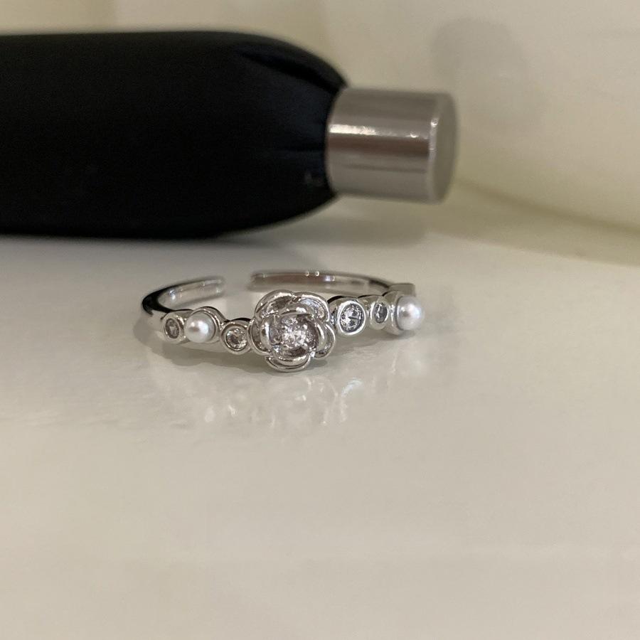 Xiaoxiangfeng zircon flower pearl ring light luxury index finger ring design open ring