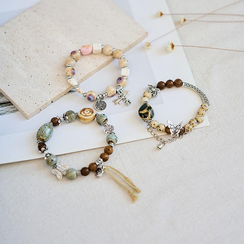 Jingdezhen ceramic bracelet wholesale gift, national style hand-woven literary and ancient style beaded new Chinese bracelet