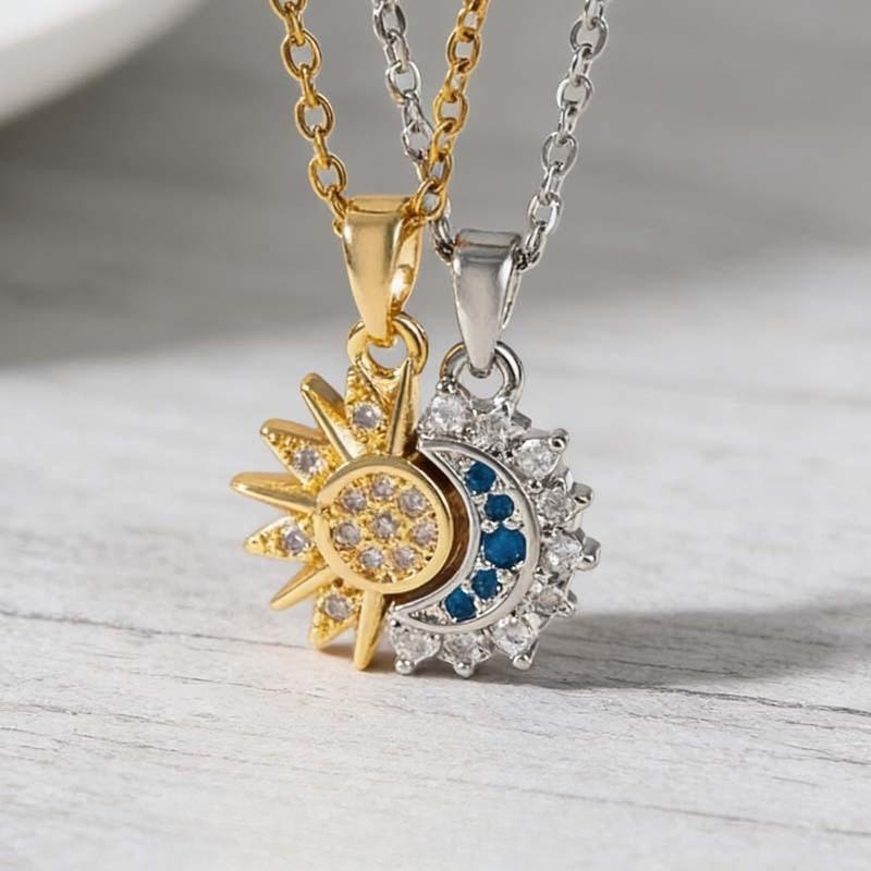 2er Set Niedliche Romantik Edelstahl Zirkon Stern Mond Umarmung Anhänger Halskette für Damen Herren Jubiläumsgeschenk Freund Schmuck