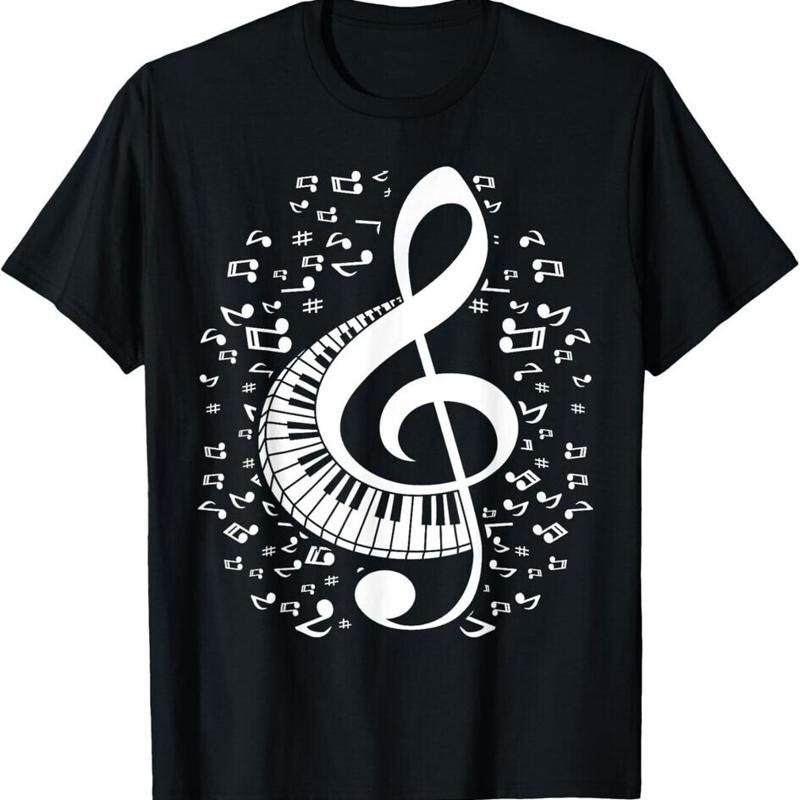 Treble Clef Keyboard Classical Music Notes Pianist Piano Black T Shirt
