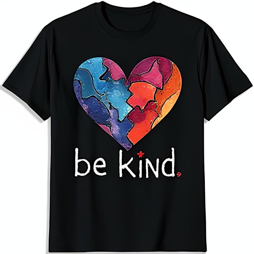 Colorful Heart Design T-Shirt Be Kind on Black Tee Unisex T-Shirt