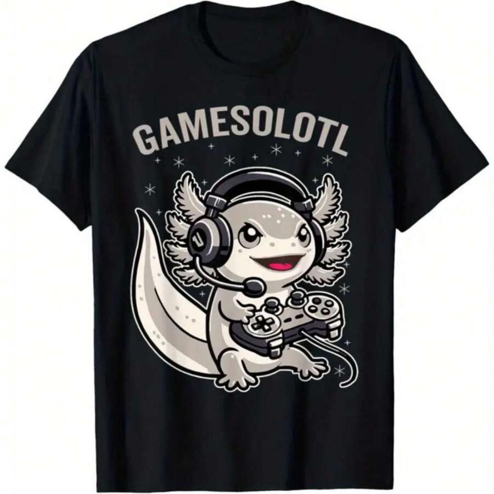 Gamesolotl Axolotl Super Weiches T-Shirt Lässige Sommeroberteile Leichter Stretchstoff Buchstabenmuster Normale Passform Perfekt