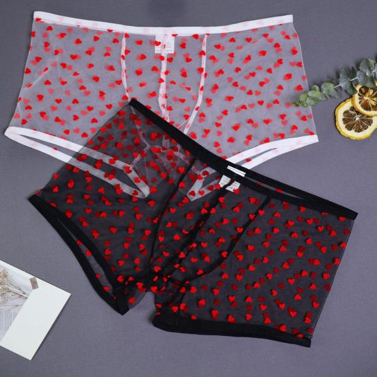 Herren Boxershorts Elastisch Mittelhoch Transparente Durchbrochene Netzstruktur Design Boxer Briefs Herzmuster Unterwäsche Jahrestagsgeschenk