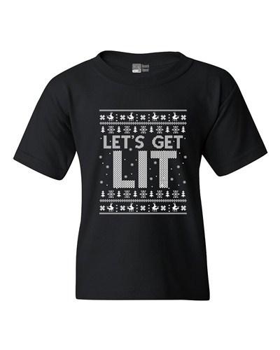 Let's Get Lit Deer Ugly Christmas Funny DT Youth Kids T-Shirt Tee Unisex T-Shirt