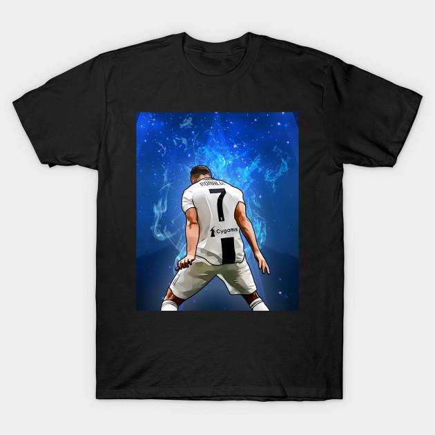 Men Black Print T-shirt Cr7 Juve No-Cut Transfer Paper Print Cotton Tshirt