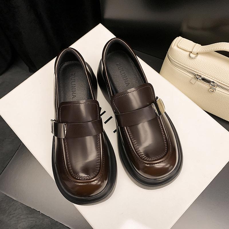 Plattform Damenschuhe neue Muffin-Höhung kleine Leder British Style kleine Lederschuhe braune Einzel-Schuhe