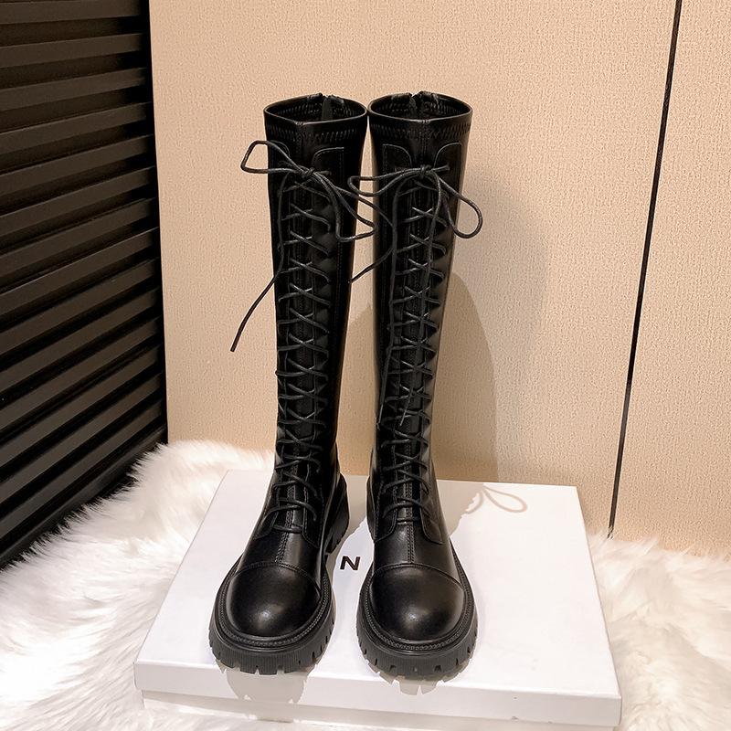 Leather platform-soled Martin boots lace-up knight boots British style heightening boots lace-up round head platform women's boots
