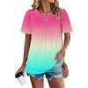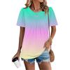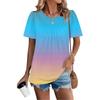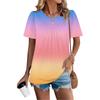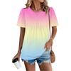 Lässiges Damen-T-Shirt mit Rundhalsausschnitt, Farbverlauf-Print, Falten und kurzen Ärmeln