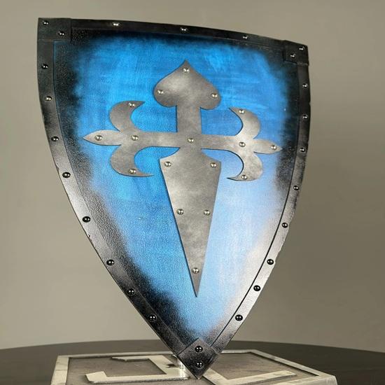 Besitzen Sie ein Stück mittelalterliche Tapferkeit mit unserem 71,12 cm (28 Zoll) Blauer Templerschild – eine atemberaubende Nachbildung des ikonischen Kreuzfahrer-Heizschilds, der von den Tempelrittern geführt wurde. Dieses kampfbereite Meisterwerk wurde für Geschichtsinteressierte, Reenactoren, Cosplayer und Sammler gefertigt und vereint auffälliges Design mit authentischen Details.. Hängen Sie es stolz in Ihr Zuhause, führen Sie es in LARP-Schlachten oder schenken Sie es einem Ritter im Herzen!