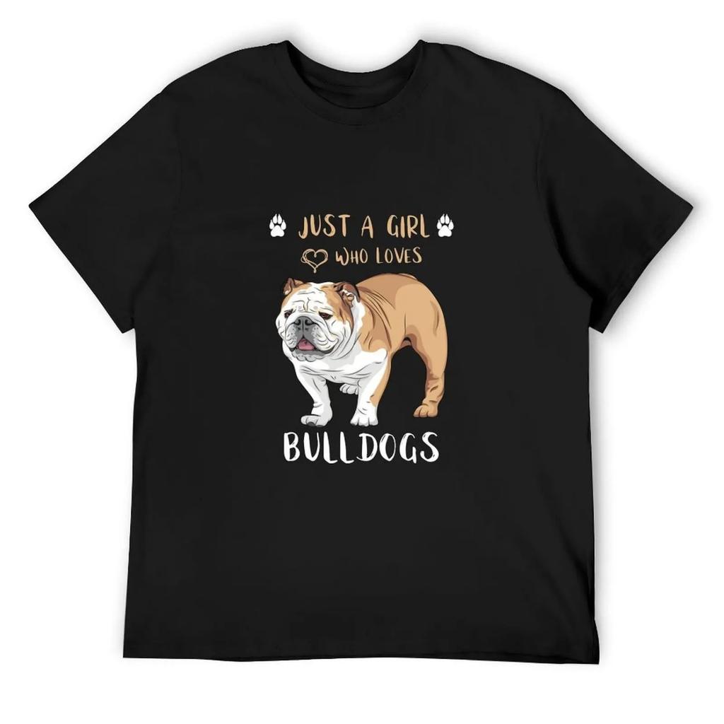Just A Girl Who Loves English Bulldogs Cute Bulldog Drawing English Bulldog Lovers Girls Gift T-Shirt