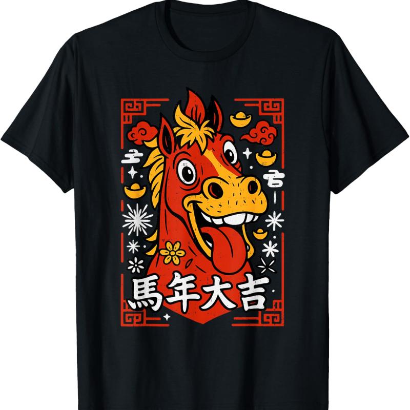 Chinesisches Neujahr 2026 Jahr des Pferdes Mondneujahr 2026 Unisex T-Shirt Rundhals Bedrucktes T-Shirt Oberteile Oberteile T-Shirt Kurz