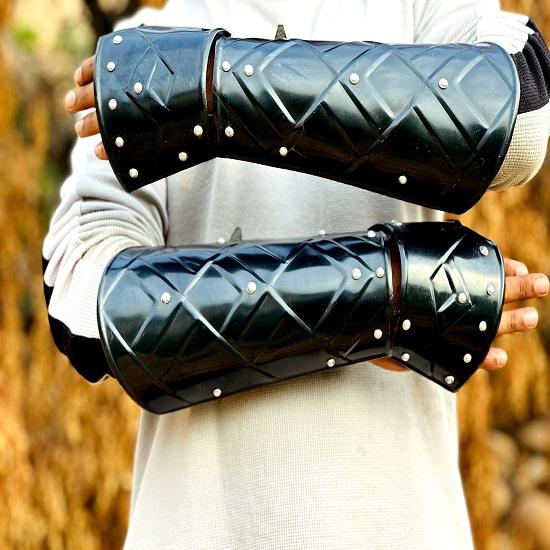 Verwandeln Sie Ihre Fantasie mit unseren mittelalterlichen Armschienen in die Realität: Geschwärzte Armschützer. Tauchen Sie ein in die bezaubernde Welt der Ritter, der Magie und des Abenteuers und setzen Sie ein mutiges Zeichen, wohin auch immer Ihre Cosplay-Reise Sie führt. Lassen Sie Ihrer Fantasie freien Lauf, umarmen Sie den Geist der Vergangenheit und nutzen Sie den Tag mit diesen faszinierenden Armschienen, die Stil und Substanz in einem bemerkenswerten Paket vereinen.
