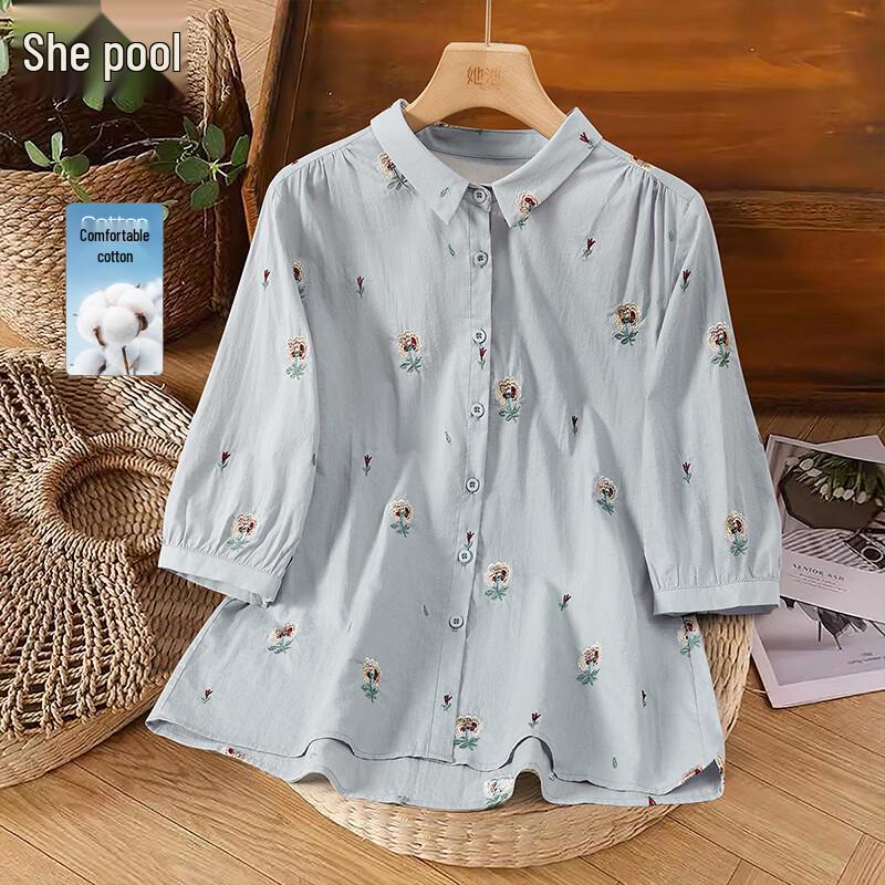 Shechi Women's Embroidered Half-Sleeve Lapel Blouse