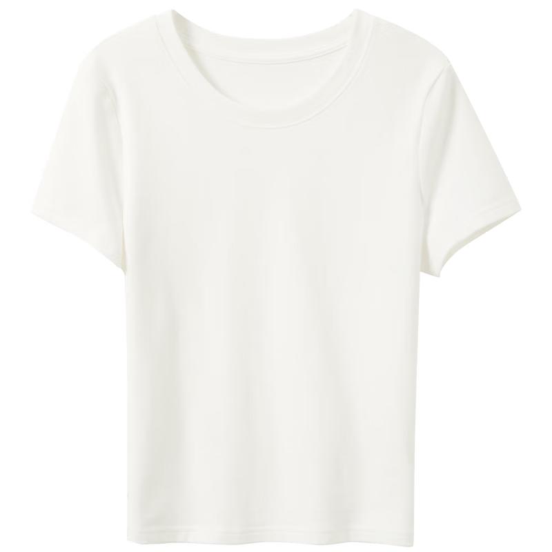 Sancai Women's Solid Round Neck Short Sleeve T-Shirt