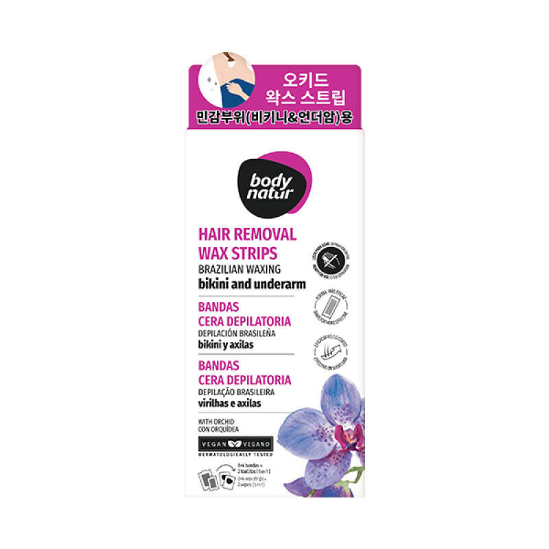 Ingredients: Wax Strips: Hydrogenated Polydicyclopentadiene, Mineral Oil, Microcrystalline Wax, Orchis Morio Flower Extract (0.0075%), Helianthus Annuus (Sunflower) Seed Oil, PEG-8 Dioleate, Fragrance, Ultramarines, Titanium Dioxide, Red 218 Finishing Tissues: Isopropyl Myristate, Purified Water, Cetearyl Ethylhexanoate, Glycerin, Polyglyceryl-3 Diisostearate, Glyceryl Behenate, Arnica Montana Flower Extract, Angelica Sinensis Leaf Extract, Tocopheryl Acetate, Hydrolyzed Jojoba Esters, Helianthus Annuus (Sunflower) Seed Oil, Sodium Chloride Caprylyl Glycol, Pentylene Glycol, Disodium EDTA, Phenoxyethanol, Ethylhexylglycerin, Fragrance, Mica, Titanium Dioxide