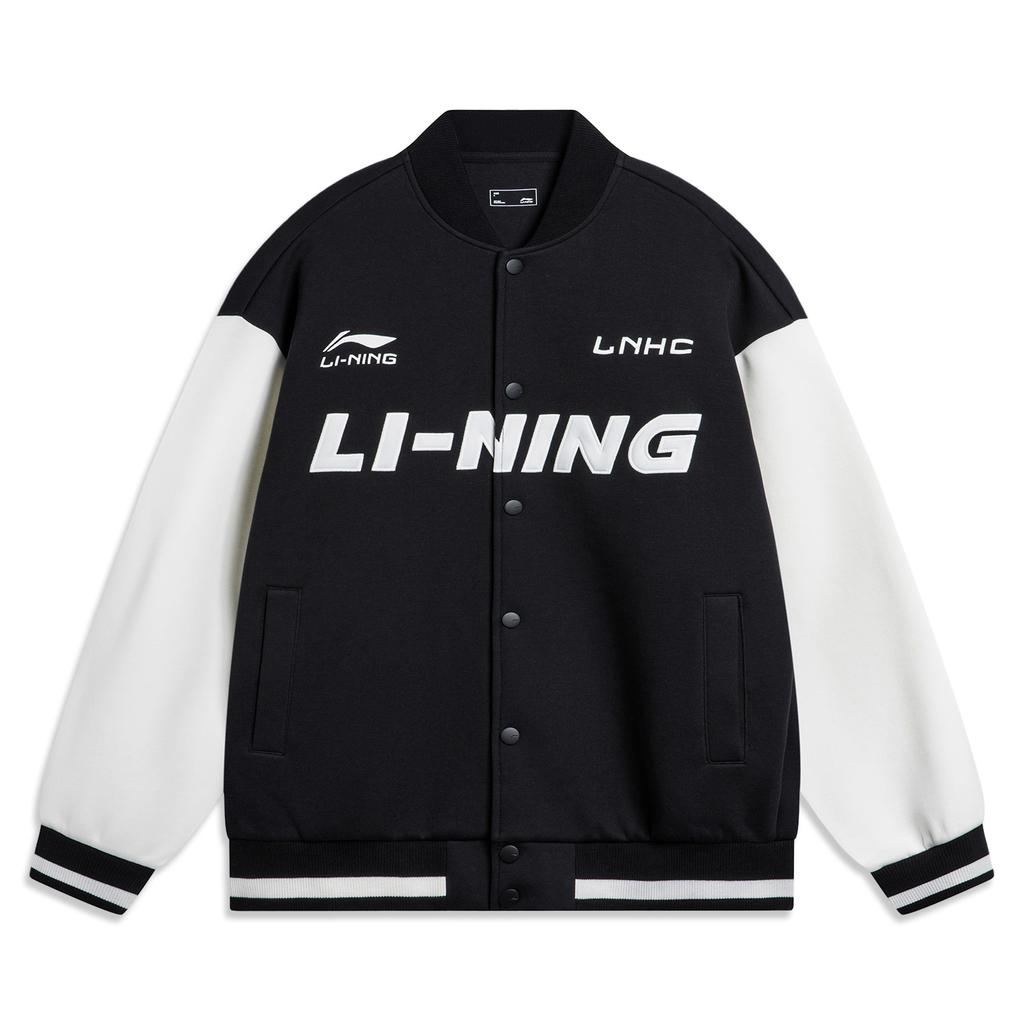 Li Ning Sports Lifestyle Series American Vintage Street Style Spliced Single-Breasted Long Sleeve Baseball Jacket Unisex Jacket Black AWDU779-2
