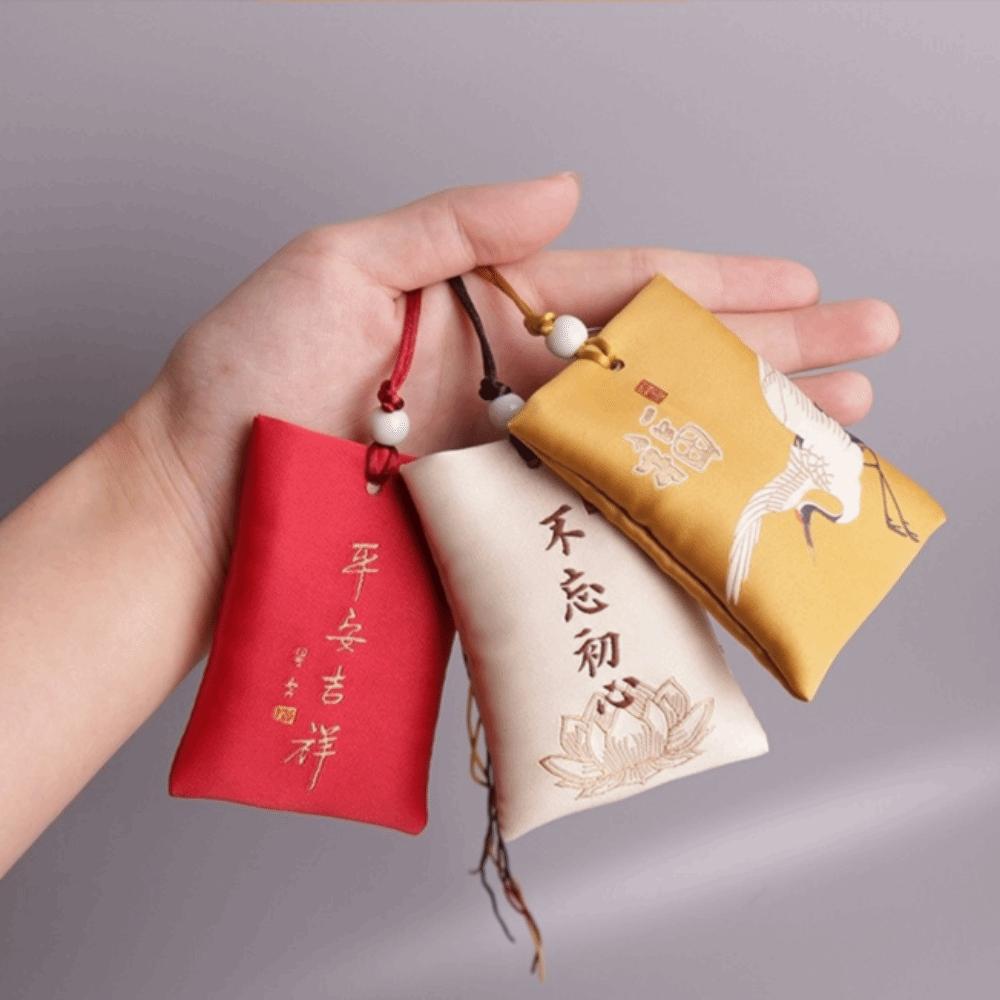 Klassischer japanischer Gebets-Glücksbringer Omamori Beten Schönheit Bestickte Beutel Glück Kaiserliches Paar Schlüsselanhänger Herbstfest
