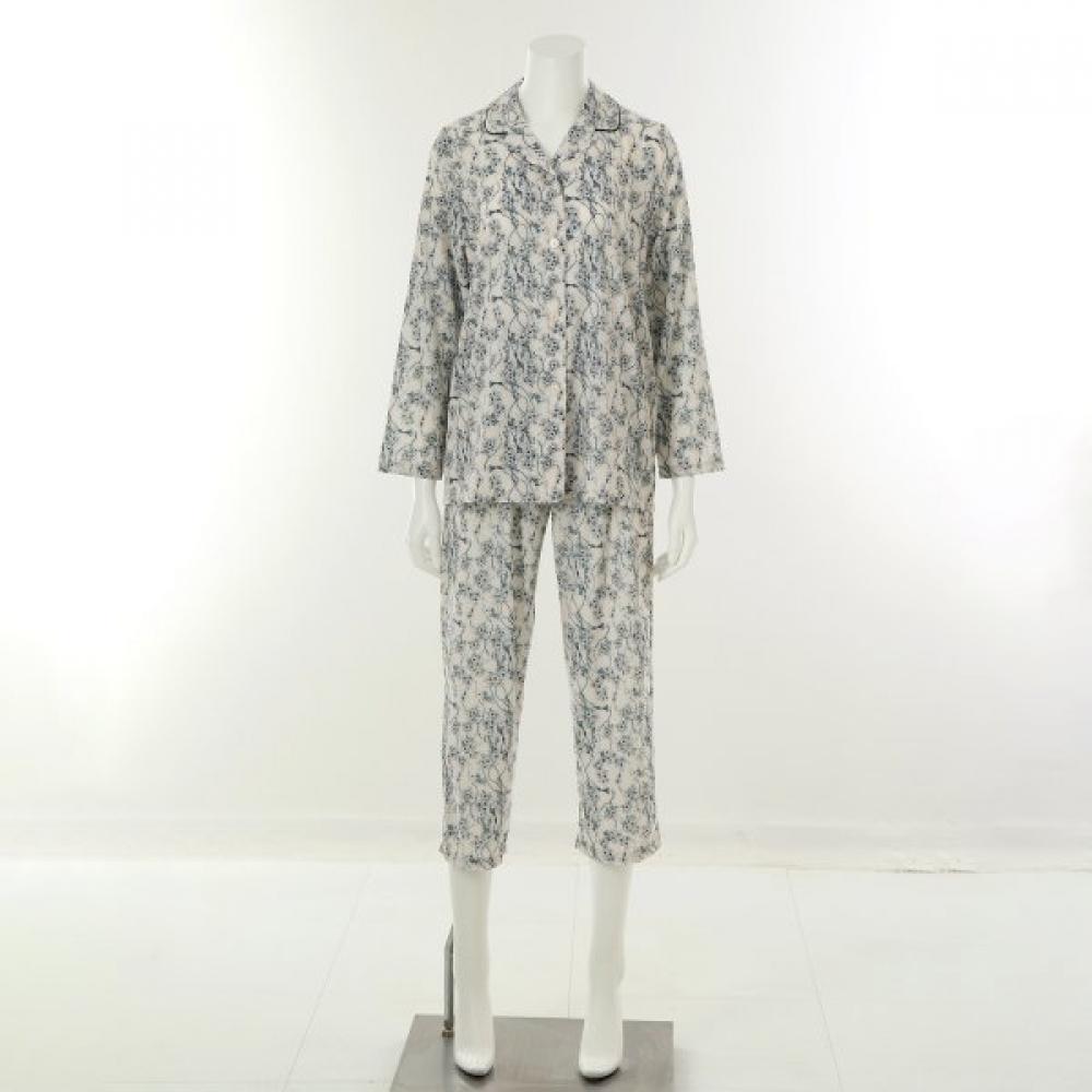 The Wakoru 30D Polyester Flower Print Women's Pajamas WPA2503W is a women's two-piece pajama set featuring a delicate flower print. It provides a light wearing experience as if you are not wearing anything, with a luxurious silk-like feel, excellent drape, and elasticity of the fabric. The material is polyester spandex, designed as a 9-part length women's pajama. This series includes basic pajamas for men and women as well as women's ensembles.