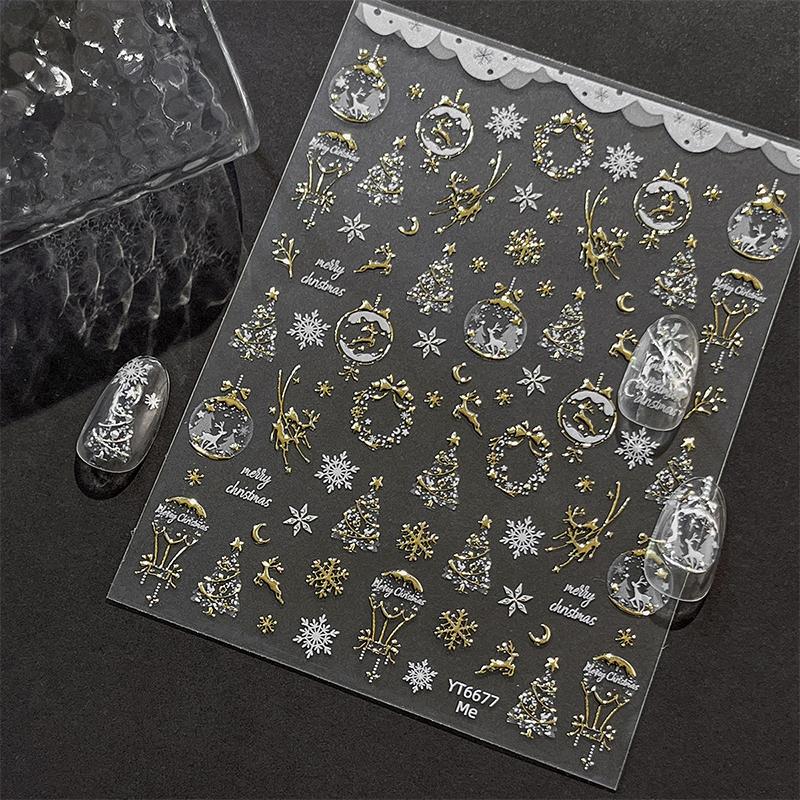 Gold-Stamped Christmas Elk Nail Art Stickers Christmas Series Snowflake Wreath Decorative Stickers