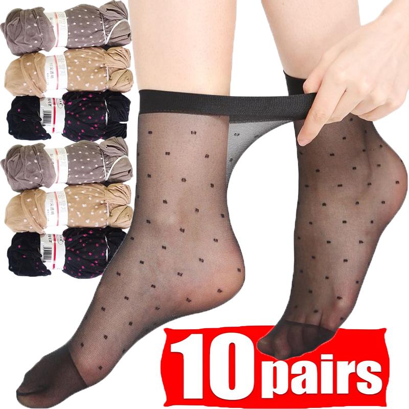 5/10 Pairs Dot Seide Socken Frauen Transparent Dünne Atmungsaktive Sommer Nylon Kurze Weibliche Non-Slip Stretch Knöchel Sexy Socke