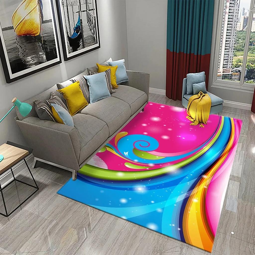 3D bunter fließender Linienwirbel Teppich Stilvoller moderner abstrakter Teppich Wohnzimmer Schlafzimmer Dekor Teppiche Badezimmer rutschfest