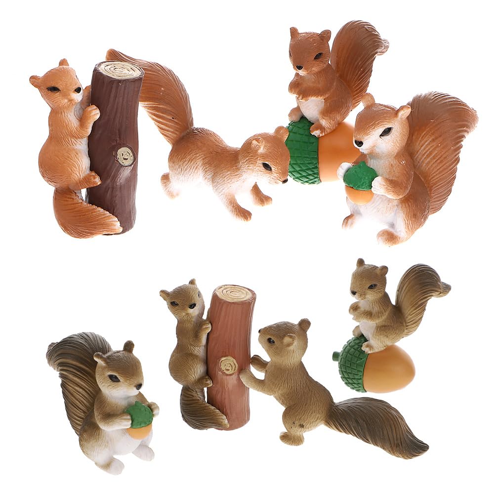 OUNONA Squirrel Figurine PVC Micro Landscape Miniature Garden Tabletop Indoor and Outdoor Cute Animal Figures 8-Piece Set, Decorations, Decor, Use,