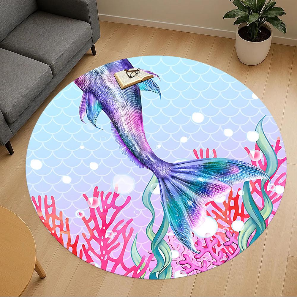 1pc Mermaid Tail Coral Round Chair mat Area Rug - Non-Slip, Floor Mat for Office, Bedroom, and Indoor Decor c1125428
