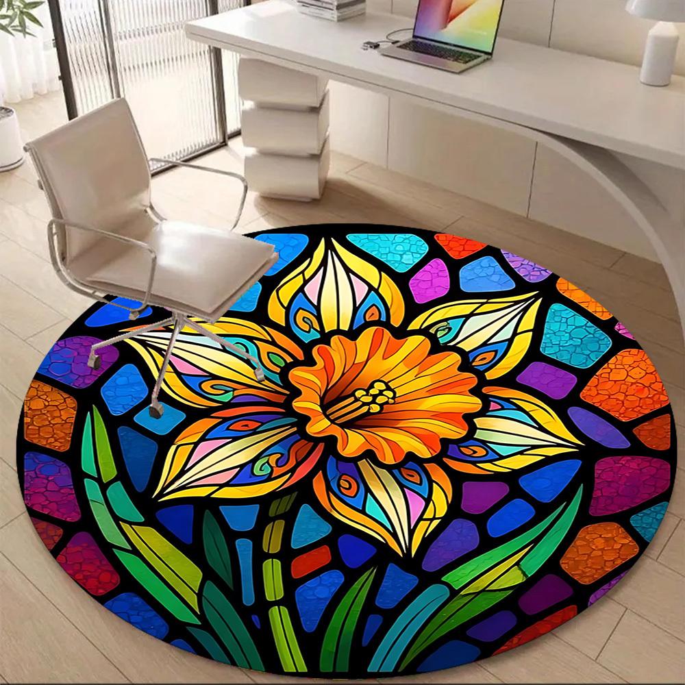 1pc Stained Glass Flower Office Round Area Rug, Indoor Mat Suitable ForOffice, Under Office Chairs Bedroom Living Room Home Decor, Room Deco D054