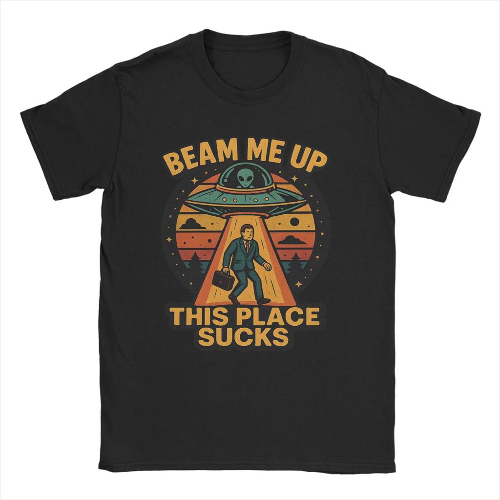 Herren Damen Beam Me Up Dieser Ort ist Mist T-Shirt Baumwolle Oberteile Lustiges Kurzarm Rundhals T-Shirt Erwachsenen T-Shirt