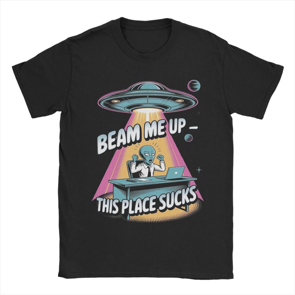 Men Beam Me Up This Place Sucks Funny Alien UFO SciFi T Shirts Pure Cotton Clothes Crew Neck Tee Shirt Big Size TShirts