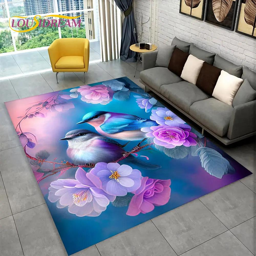 Exquisiter 3D-Teppich mit Vogel- und Blumenmotiv, Teppich für Zuhause, Wohnzimmer, Schlafzimmer, Sofa, Fußmatte, Küchendekoration, rutschfeste Bodenmatte