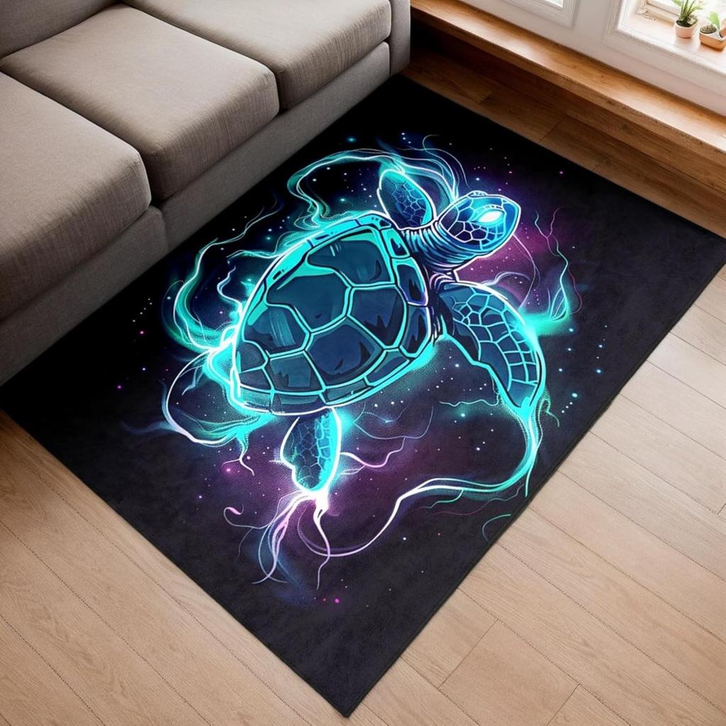 Green Sea Turtle Area Rug for Boys Bedroom, Ocean Animal Theme Carpet, Non-Slip Play Mat for Kids Living Room and Classroom