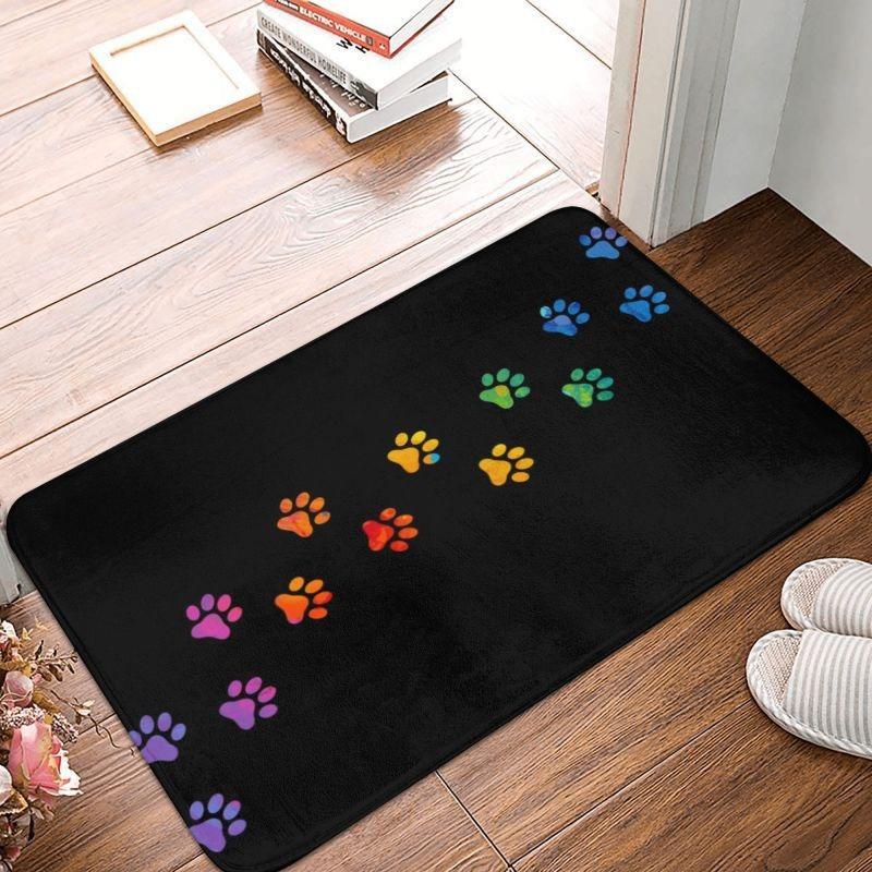 Buntes HundePfotenMuster Willkommen Eingangstür Matte Rutschfeste Teppiche für Schlafzimmer Dekor Heim Wohnzimmer Dekoration Küchenboden Matte
