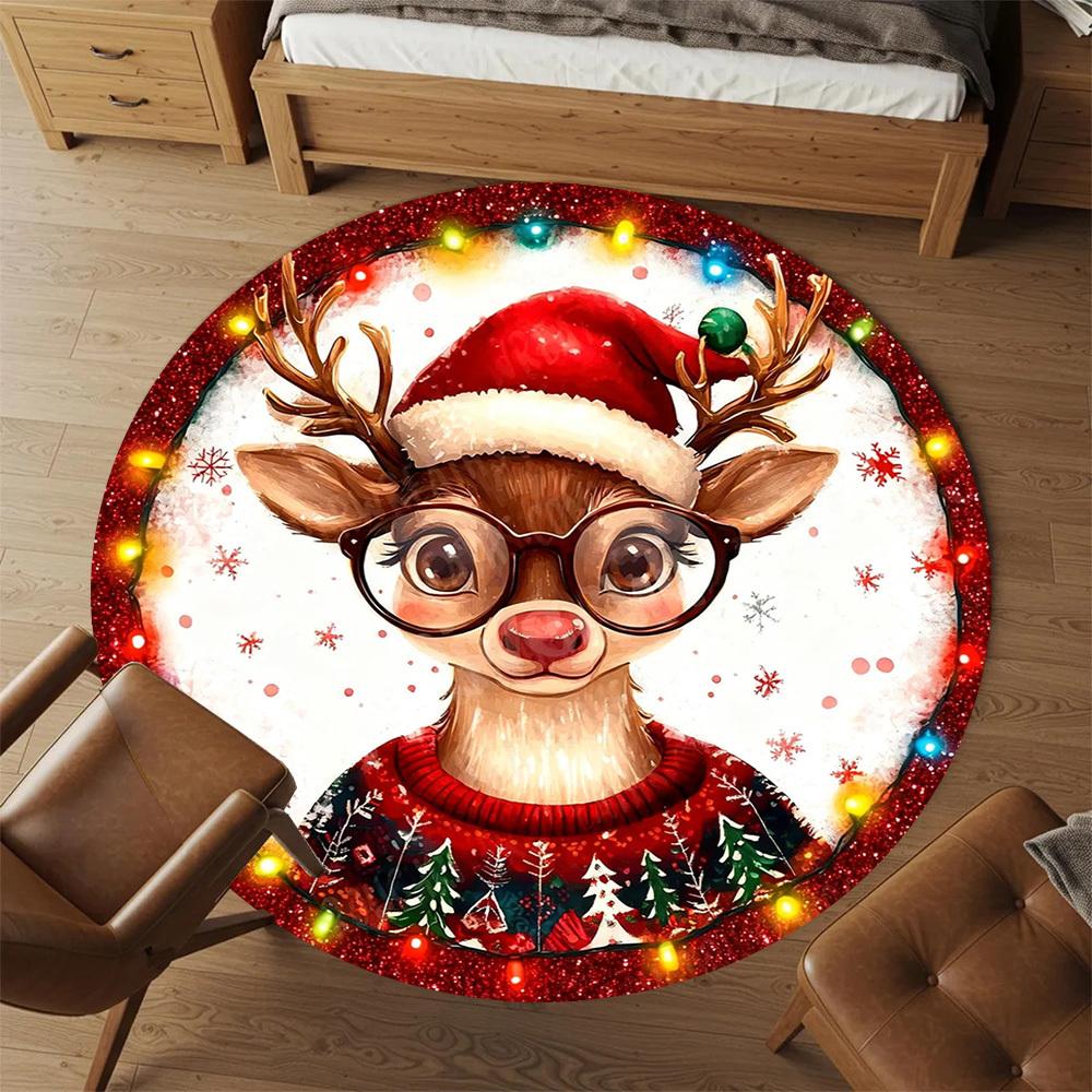 1PC reindeer sweater Office Round Area Rug, Under Office Chairs Bedroom Living Room Home Decor,Carpet for Office, -1110207