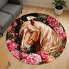 1 Stück Pferd Blumen Büro Runder Teppich, Unter Bürostühlen Schlafzimmer Wohnzimmer Heimdekoration, Teppich für Büro -1110119