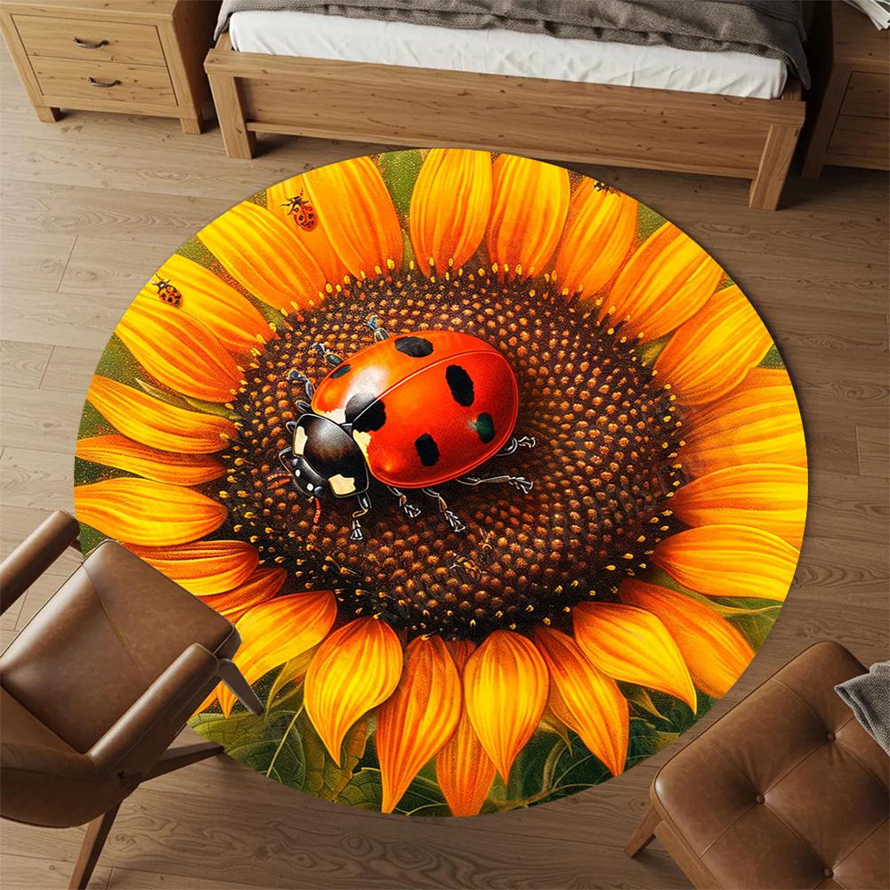 1 Stück Marienkäfer Sonnenblume Büro Runder Teppich, Unter Bürostühlen Schlafzimmer Wohnzimmer Heimdekoration, Teppich für Büro -1110047