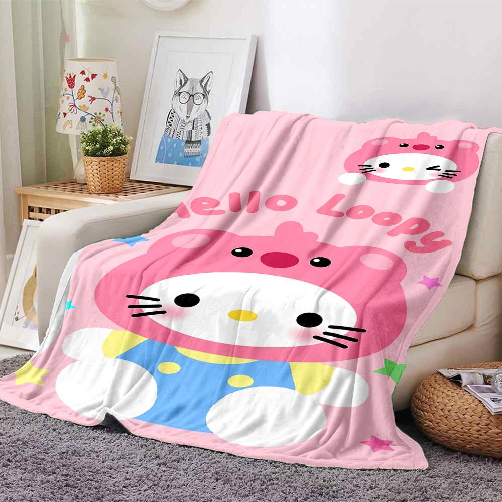 1 Stück Hello Kitty Loopy Decke Leichte Flanell-Kuscheldecke für Sofa Bett Reise Camping Wohnzimmer Büro Couch Sessel