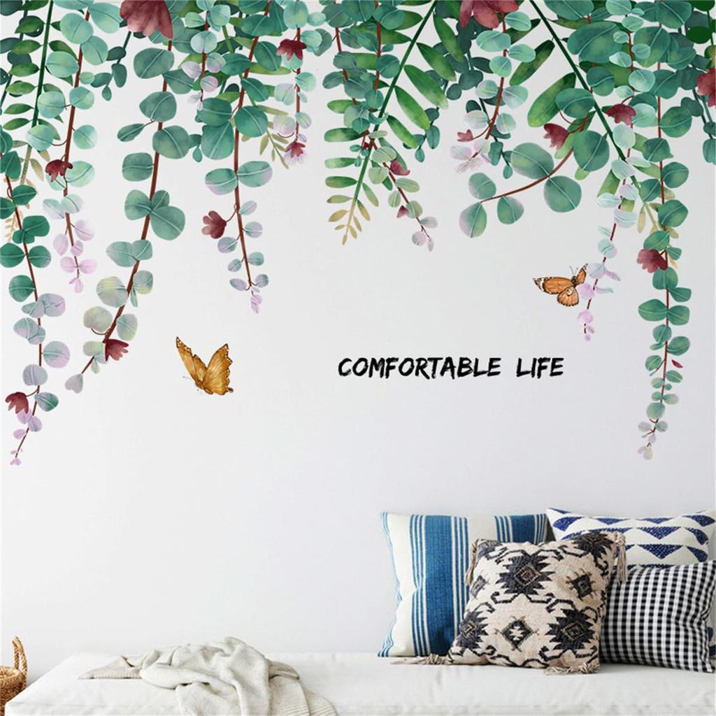 Stilvolles Grünes Blatt und Ranke Wand Nordisch Pastoral Perfekt für Wohn- und Wand-Schlafzimmer-Wandaufkleber Aufkleber, Landschaft, Abziehbar, Niedrig wachsende Blätter,