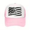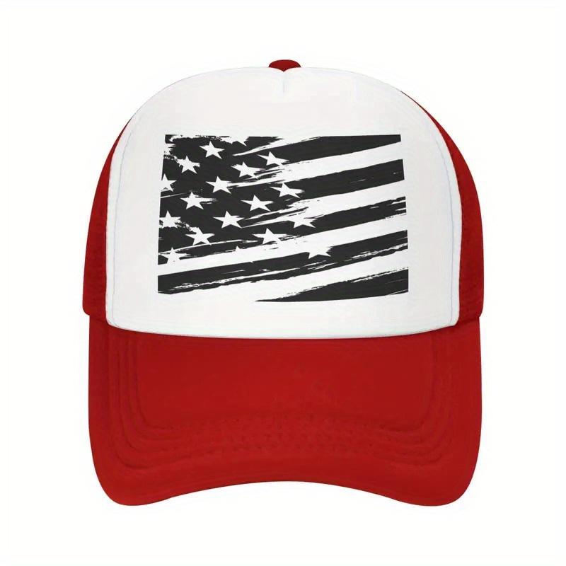 Distressed Black and White USA Flag Trucker Hat Breathable Mesh Baseball Cap Outdoor Adjustable Unisex