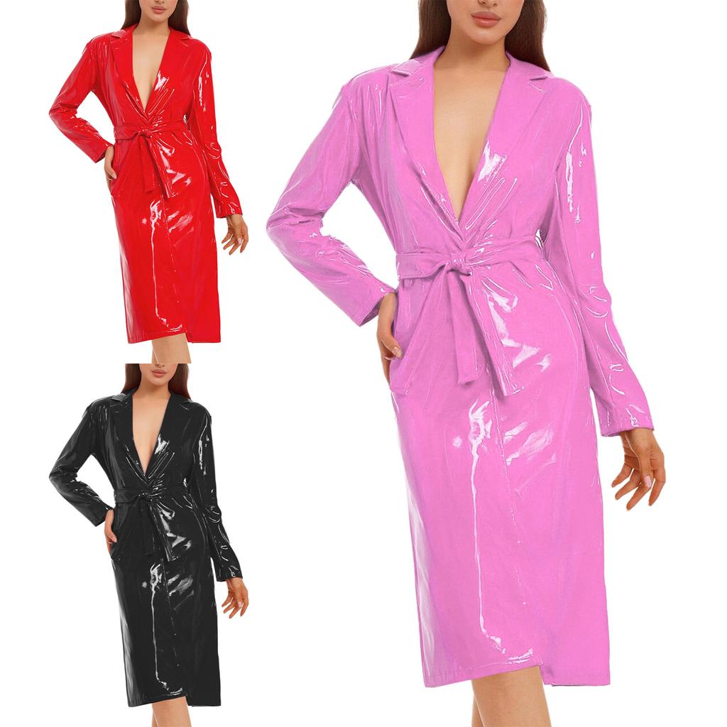 S-3XL Damen Offener Blazer-Mantel: Glänzender PU-Leder-Trenchcoat mit verstellbarem Gürtel, perfekt für den täglichen Gebrauch & Reisen