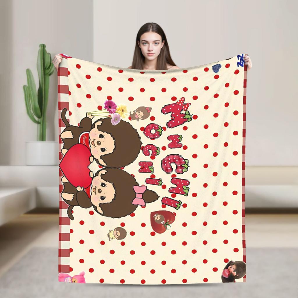 Super warme Decken Kinder Erwachsene Picknick Niedliche Monchichis Überwurf Decke Flanell Tagesdecke Für Couch Stuhl Sofa Bettbezug