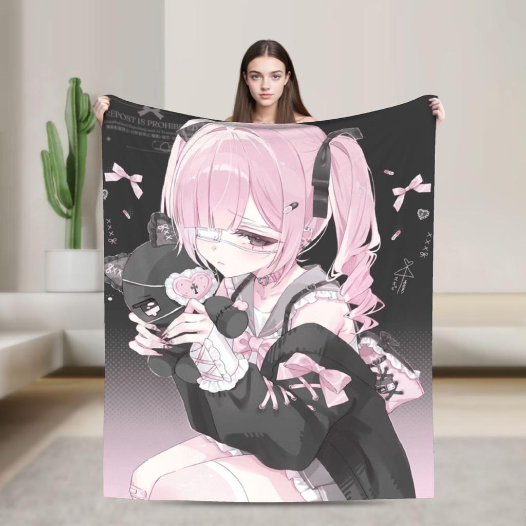 Jirai Kei Weiche Decke Kinder Plüsch Überwurf Grafische Heimdekoration Flanell Bettdecke Sofa Bettbezug