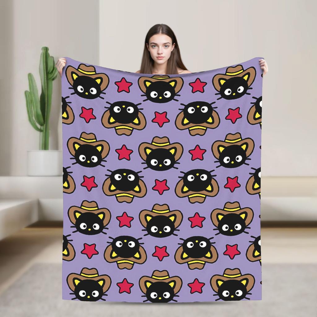Cute Chococats Plush Blankets Students Black Cat Flannel Throw Blanket For Outdoor Super Soft Design Quality Bedspread Gift