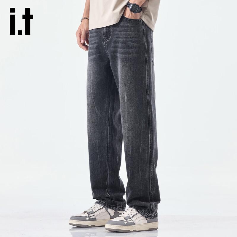 izzue it Men's American Retro Loose Straight-Leg Jeans
