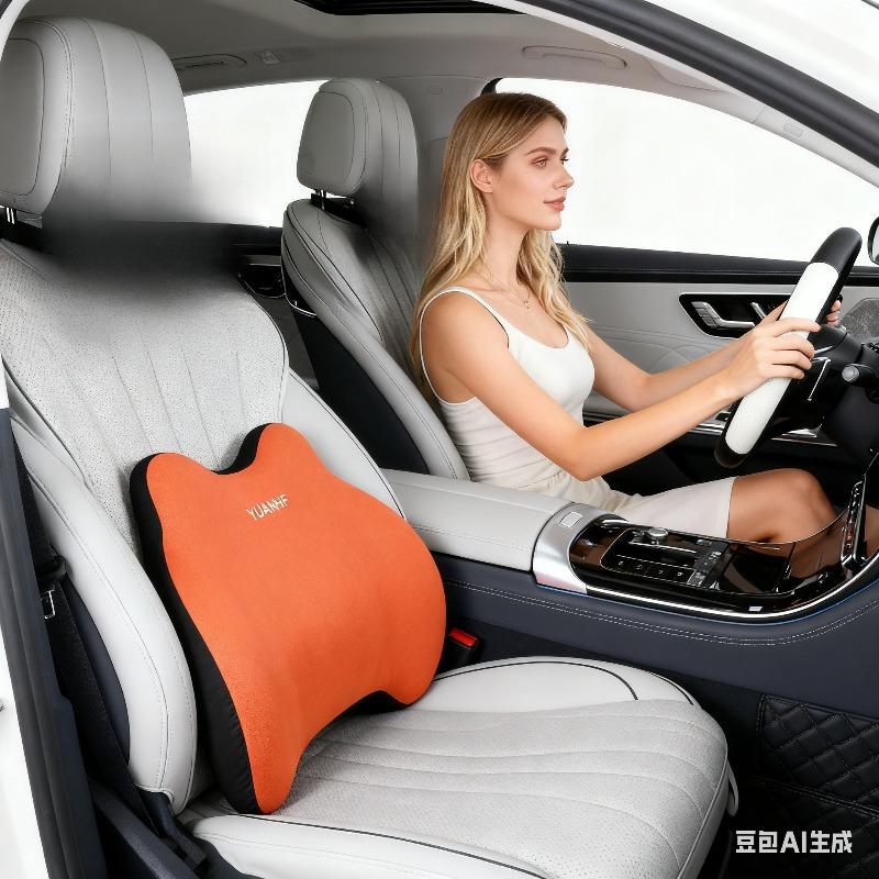 Compressible car headrests and lumbar support kits, memory foam breathable cushions and neck pillows