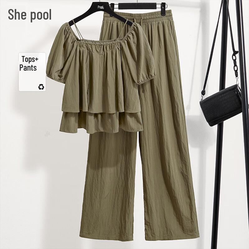 She Chi Damen Sommer-Top mit kurzen Ärmeln & Weitbeinige Hose Set