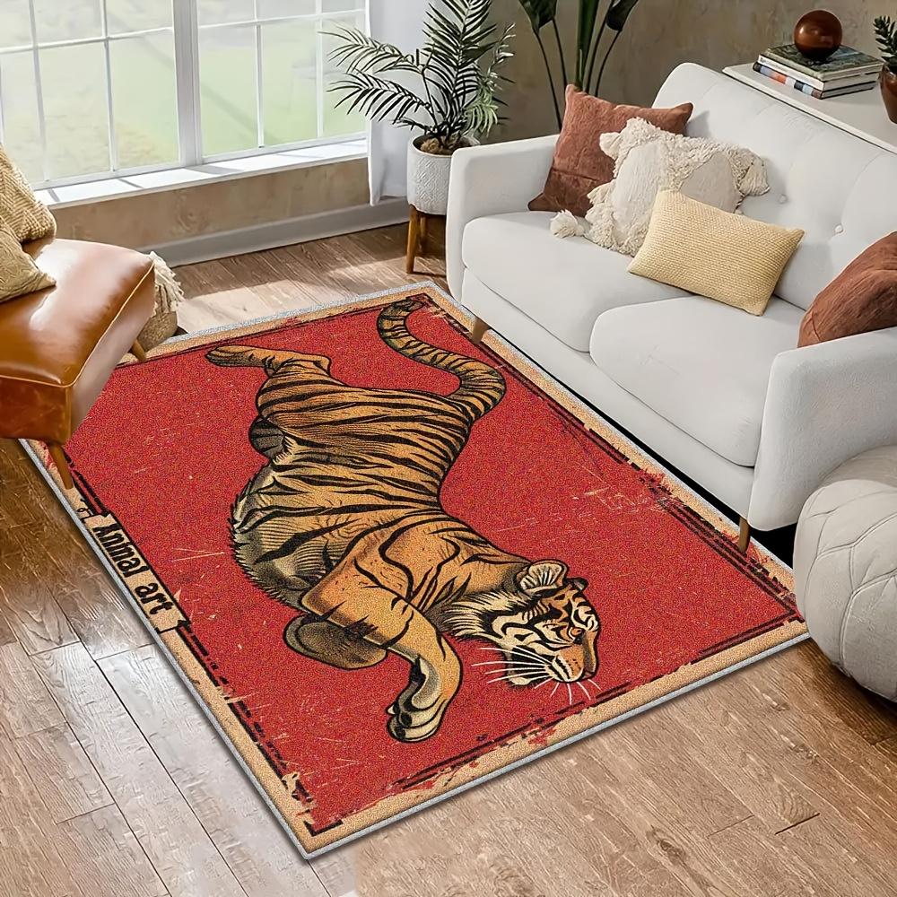 Tiger Patterned Carpets for Dormitories and Living Rooms, Animal Patterns, Red Home Decor Mats for Both Indoor and Outdoor Use